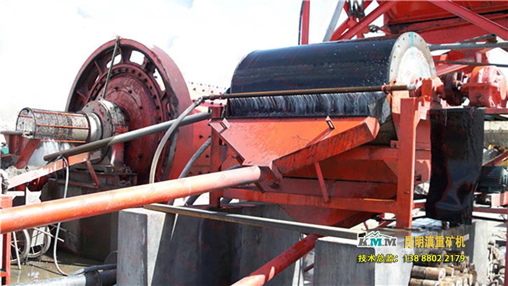 2、磁選機筒體轉(zhuǎn)動時由于磁極交替,吸附的磁團和磁鏈產(chǎn)生磁攪拌,中間夾雜的非磁性的脈石等從筒體脫落下來,則剩下吸附在筒表的磁團和磁鏈形成精礦。